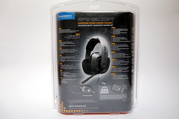 Plantronicsy zapakowano w skromne, przezroczyste opakowanie wykonane z trochę twardszego tworzywa, niż to używane do produkcji butelek. Szata graficzna nie powala na kolana, aczkolwiek nalepka „Oficjalne słuchawki WCG 2009” rzuca się w oczy. Szkoda tylko, że nie dodano, iż chodzi o finał polskich eliminacji World Cyber Games. Mniejsza o to. Opakowanie GameComów 777 spełnia swoją funkcję, jest w stanie ochronić produkt przed upadkiem, a dzięki zamknięciu na zatrzaski nadaje się do wielokrotnego użytku. Niestety otwieranie i zamykanie tej plastikowej bryły nie należy do komfortowych czynności. Natomiast na odwrocie pudełka znajdziemy podstawowe informacje o produkcie, zaserwowane w 15 językach świata, również po polsku.